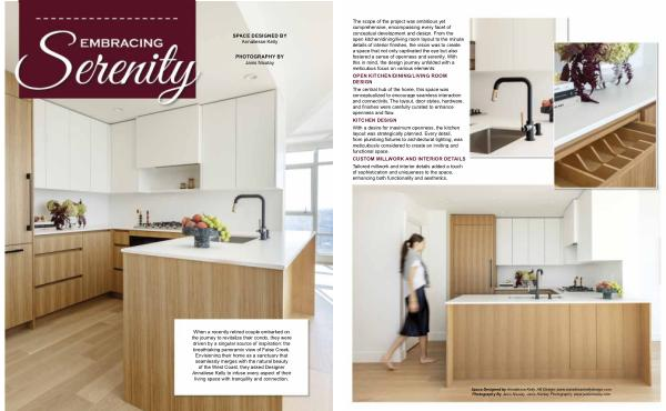 When a recently retired couple embarked on the journey to revitalize their condo , they were driven by a singular source of inspiration : the breathtaking panoramic view of False Creek . Envisioning their home as a sanctuary that seamlessly merges with the natural beauty of the West Coast , they asked Designer Annaliese Kelly to infuse every aspect of their living space with tranquility and connection .