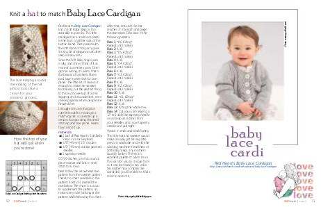 Photo courtesy of Red Heart baby lace cardi Red Heart's Baby Lace Cardigan http://www.redheart.com/free-patterns/baby-lace-cardigan KNITmuch | issue 2 51