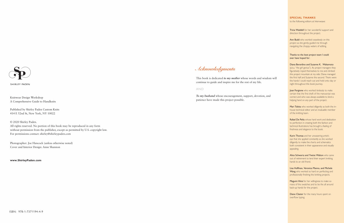Lisa Hoffman, Veronica Manno, and Michele Wang who worked so hard on perfecting and professionally finishing the knitting projects.