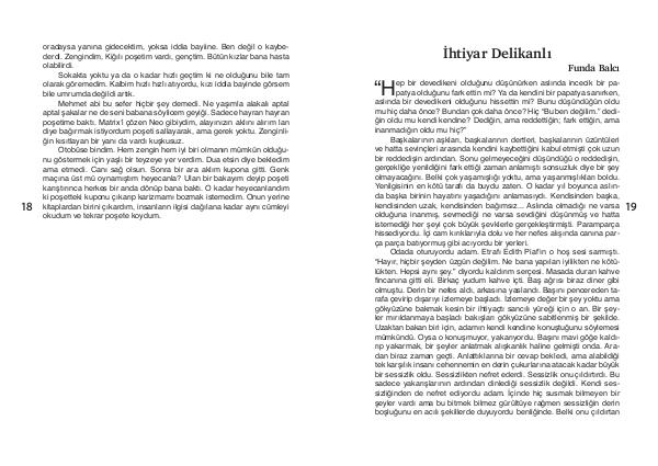 “ H ep bir devedikeni olduğunu düşünürken aslında incecik bir papatya olduğunu fark ettin mi? Ya da kendini bir papatya sanırken, aslında bir devedikeni olduğunu hissettin mi? Bunu düşündüğün oldu mu hiç daha önce? Bundan çok daha önce? Hiç“ Bu ben değilim.” dediğin oldu mu kendi kendine? Dediğin, ama reddettiğin; fark ettiğin, ama inanmadığın oldu mu hiç?”