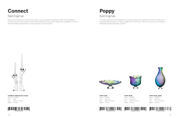 The Poppy collection from Kosta Boda is inspired by a poppy flower right before it blooms . All the colors symbolize different nuances in nature : daylight , rain , frost , and sun . Add some color to your life ! Poppy is handmade at Kosta Glassworks , Sweden .