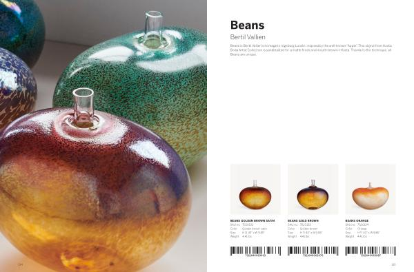 Beans is Bertil Vallien ’ s homage to Ingeborg Lundin , inspired by the well-known “ Apple ”. This object from Kosta Boda Artist Collection is sandblasted for a matte finish and mouth-blown in Kosta . Thanks to the technique , all Beans are unique .