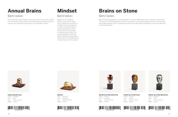 The anniversary edition of Brains was produced for the first time in 2023 . The anniversary variants of Brains are slightly larger and heavier than the previous ones , and they rest peacefully on a soft leather cushion .