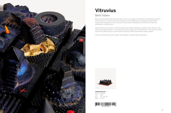 Renowned artist Bertil Vallien has named this collection of sculptures VITRUVIUS , after the Roman architect . Vitruvius ’ stance on houses and humans , dating back nearly 2000 years , has always appealed to Bertil . Incorporating impulses from music was just as important as mathematics to the Roman architect and philosopher in his field of work .