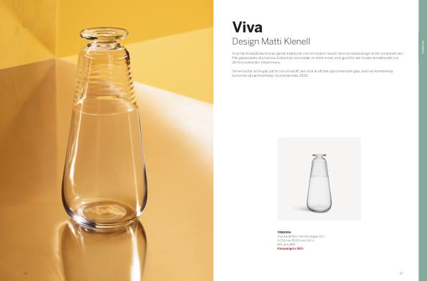 Serien består av tre glas på fot och en karaff , vars lock är ett litet uppochnervänt glas , som kan kombineras beroende på sammanhang . Viva lanserades 2020 .