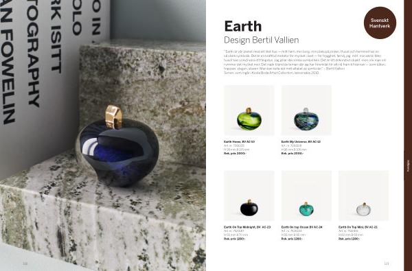 “ Earth är vår planet med ett litet hus— mitt hem, min borg, min plats på jorden. Huset och hemmet har en så stark symbolik. Det är en kraftfull metafor för mycket i livet— för trygghet, familj, jag, mitt, min värld. Men huset kan också vara ett fängelse. Jag gillar den enkla symboliken. Det är ett dekorativt objekt, men om man vill rymmer det mycket mer. Det ingår bland de teman där jag har förenklat för att nå fram till kärnan— som båten, trappan, stegen, staven. Man kan kalla det mitt alfabet av symboler.” – Bertil Vallien Serien, som ingår i Kosta Boda Artist Collection, lanserades 2010.