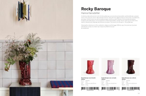 A rebellious take with ancient roots, the Rocky Baroque series by Hanna Hansdotter and Kosta Boda is a playful remix of the classical column. Monumental contours clash with raw, jagged surfaces in this series of candlesticks and vases. Vibrant colors mix with unyielding shapes, and the product resides in the borderlands between sculpture and utility object, a recurring theme in Hanna Hansdotter’ s design. Humor and irony are other tools used to interpret and challenge authoritarian principles. The result is its own genre – Rocky Baroque.