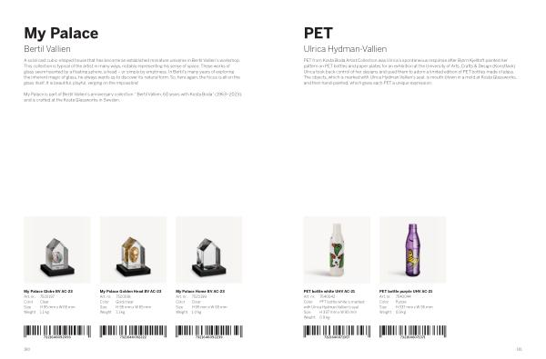 PET from Kosta Boda Artist Collection was Ulrica’ s spontaneous response after Björn Kjelltoft painted her pattern on PET bottles and paper plates for an exhibition at the University of Arts, Crafts & Design( Konstfack). Ulrica took back control of her designs and used them to adorn a limited edition of PET bottles made of glass. The objects, which is marked with Ulrica Hydman Vallien’ s seal, is mouth-blown in a mold at Kosta Glassworks, and then hand-painted, which gives each PET a unique expression.