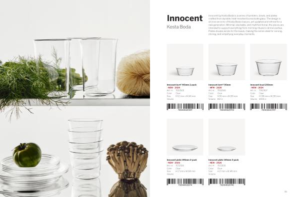 crafted from durable, heat-resistant borosilicate glass. The design is at once an echo of Kosta Boda classics, yet updated and refined for a new generation. Minimal, stackable, and multifunctional, the pieces are