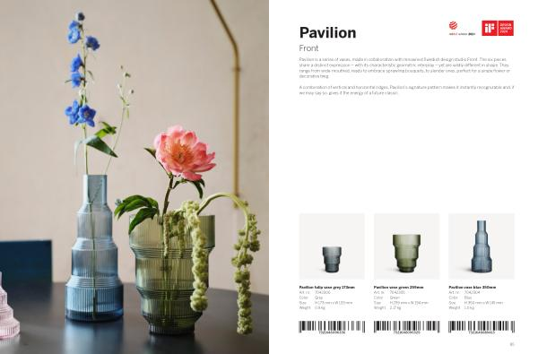 Pavilion is a series of vases, made in collaboration with renowned Swedish design studio Front. The six pieces share a distinct expression – with its characteristic geometric interplay – yet are wildly different in shape. They range from wide-mouthed, ready to embrace sprawling bouquets, to slender ones, perfect for a single flower or decorative twig.