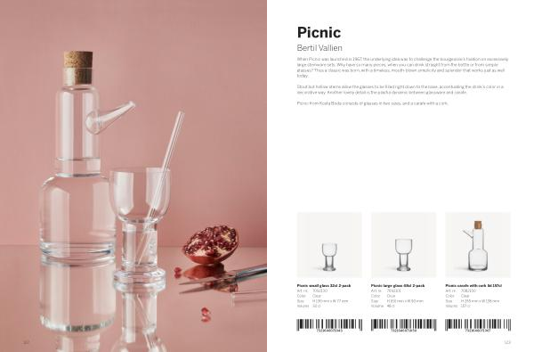 When Picnic was launched in 1967, the underlying idea was to challenge the bourgeoisie’ s fixation on excessively large stemware sets. Why have so many pieces, when you can drink straight from the bottle or from simple glasses? Thus a classic was born, with a timeless, mouth-blown simplicity and splendor that works just as well today.