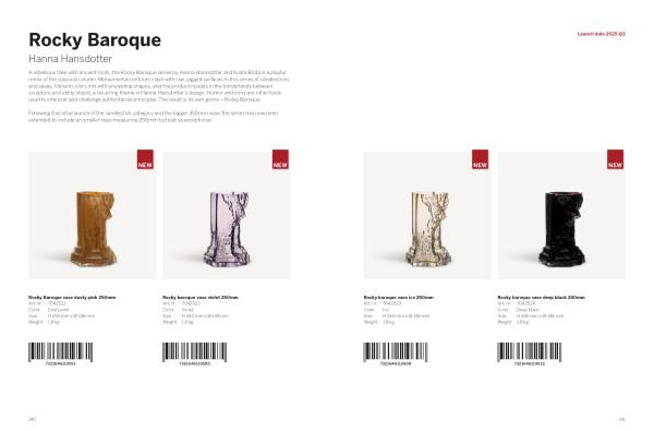 A rebellious take with ancient roots, the Rocky Baroque series by Hanna Hansdotter and Kosta Boda is a playful remix of the classical column. Monumental contours clash with raw, jagged surfaces in this series of candlesticks and vases. Vibrant colors mix with unyielding shapes, and the product resides in the borderlands between sculpture and utility object, a recurring theme in Hanna Hansdotter’ s design. Humor and irony are other tools used to interpret and challenge authoritarian principles. The result is its own genre – Rocky Baroque.