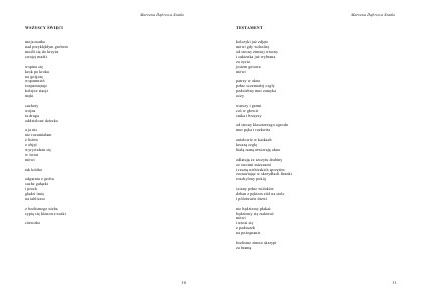Marzena D?browa Szatko WSZYSCY ?WI?CI moja matka nad przykl?k?ym grobem modli si? do krzy?a swojej matki wspina si? krok po kroku na golgot? wspomnie? rozpami?tuje kolejne stacje m?ki suchoty wojna ta druga oddzielone dziecko a ja nic nie rozumia?am z listów z obj?? wyrywa?am si? w ?wiat mówi tak krótko odgarnia z grobu suche ga??zki i proch g?adzi imi? na tabliczce z bezlistnego nieba sypi? si? klonowe noski córeczko
