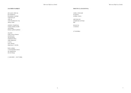 Marzena D?browa Szatko MOTYW Z AUGUSTYNA siedz? w drzwiach na granicy ?wiat?a i cienia nade mn? stoi rozp?kni?ta na dwoje lipa mocuje si? z wiatrem (17.08.2006)