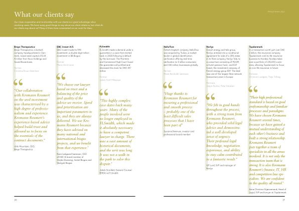 " Our collaboration with Kromann Reumert on the seed investment was characterised by a high degree of professionalism and experience . Kromann Reumert ’ s experience-based advice helped build trust and allowed us to focus on the essentials of the contract documents .”
