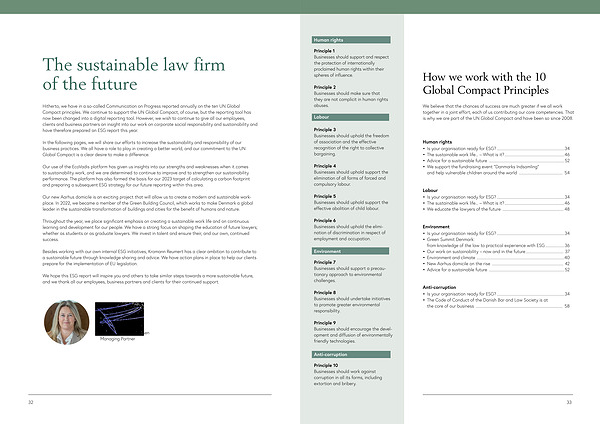 Hitherto , we have in a so-called Communication on Progress reported annually on the ten UN Global Compact principles . We continue to support the UN Global Compact , of course , but the reporting tool has now been changed into a digital reporting tool . However , we wish to continue to give all our employees , clients and business partners an insight into our work on corporate social responsibility and sustainability and have therefore prepared an ESG report this year .