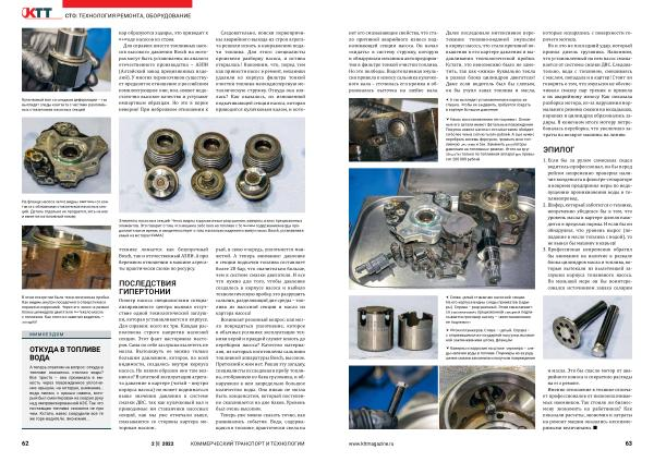Возникает резонный вопрос : как могло повредиться уплотнение , которое в обычных условиях эксплуатации техники верой и правдой служит вплоть до переборки насоса ? Качество материалов , из которых изготовлены сальники топливной аппаратуры Bosch , высокое . Претензий к ним нет . Решая эту загадку , специалисты исследовали пробу топлива , отобранную из бака грузовика , и обнаружили в нем запредельно большое количество воды . Она никак не могла быть конденсатом , который постепенно скапливается на дне баков . Уровень был очень высоким .