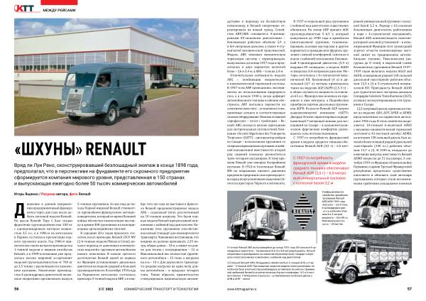 С 1937-го потребность французской армии в модели среднего тоннажа обеспечивал Renault AGR ( 3,5 т ) – 6,5-метровый универсальный грузовик с колесной базой 3,2 м . Наряду с 62-сильным бензиновым двигателем , работавшим в паре с 4-ступенчатой « механикой », Renault AGR комплектовался газогенераторной силовой установкой – в оккупированной Франции этот громоздкий агрегат отчасти компенсировал жесткий лимит на традиционное автомобильное топливо . Тяжеловесами ( нагрузка до 8 тонн ) в модельной гамме бескапотных грузовиков Renault 1937 – 1939 годов являлись модели AGLD and AGOD , оснащённые рядной 130-сильной дизельной « шестёркой » рабочим объёмом 12,5 л (!) и 5-ступенчатой механической КП . Пригодность Renault AGOD для туристического экстрима доказала Compagnie Générale Transsharienne ( CGT ), успешно эксплуатировавшая эти грузовики в Сахаре .