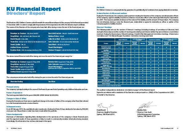 The Directors of KU Children’s Services submit herewith the annual financial report of the company for the financial year ended