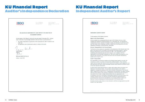 KU Financial Report Auditor’s Independence Declaration 18 KU Children’s Services
