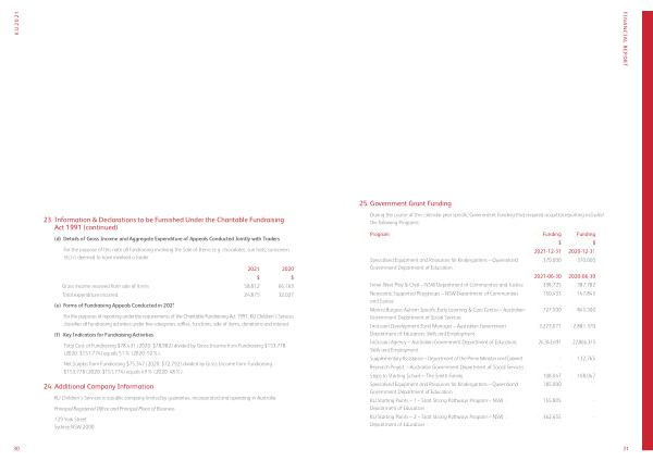 During the course of the calendar year specific Government Funding that required acquittal reporting included the following Programs :