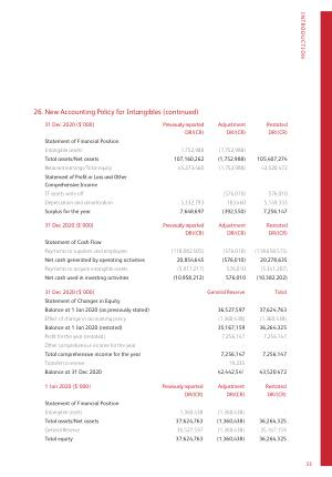 Intangible assets 1,752,988 ( 1,752,988 ) - Total assets / Net assets 107,160,262 ( 1,752,988 ) 105,407,274 Retained earnings / Total equity 45,273,460 ( 1,752,988 ) 43,520,472 Statement of Profit or Loss and Other Comprehensive Income IT assets write off - ( 576,010 ) 576,010 Depreciation and amortisation 5,332,793 183,460 5,149,333 Surplus for the year 7,648,697 ( 392,550 ) 7,256,147