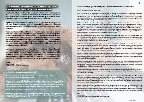 Koronan aiheuttama poikkeusaika on ollut monille meistä haastavaa aikaa. Sitä se on ollut myös Sopimusvuori ry:n sosiaalisen kuntoutuksen ja kuntout-tavan työtoiminnan asiakkaille, joista monilla ahdistus- ja paniikkioireet sekä päihteiden käyttö on lisääntynyt arjen rakenteiden kadotessa.