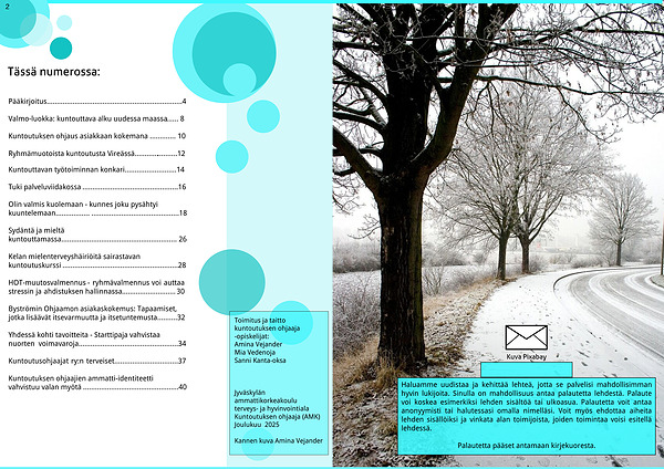 Haluamme uudistaa ja kehittää lehteä, jotta se palvelisi mahdollisimman hyvin lukijoita. Sinulla on mahdollisuus antaa palautetta lehdestä. Palaute voi koskea esimerkiksi lehden sisältöä tai ulkoasua. Palautetta voit antaa anonyymisti tai halutessasi omalla nimelläsi. Voit myös ehdottaa aiheita lehden sisällöiksi ja vinkata alan toimijoista, joiden toimintaa voisi esitellä lehdessä.