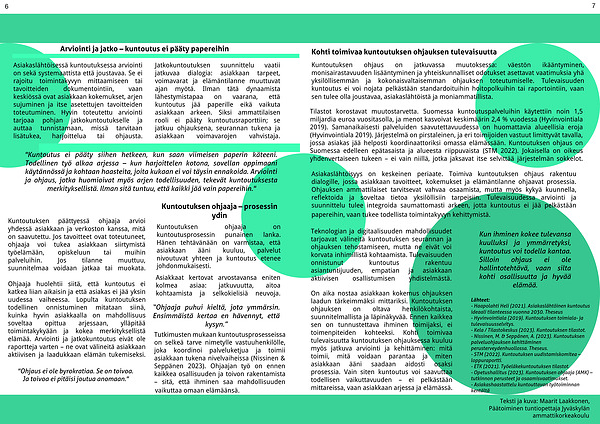 Ohjaaja huolehtii siitä, että kuntoutus ei katkea liian aikaisin ja että asiakas ei jää yksin uudessa vaiheessa. Lopulta kuntoutuksen todellinen onnistuminen mitataan siinä, kuinka hyvin asiakkaalla on mahdollisuus soveltaa opittua arjessaan, ylläpitää toimintakykyään ja kokea merkityksellistä elämää. Arviointi ja jatkokuntoutus eivät ole raportteja varten – ne ovat välineitä asiakkaan aktiivisen ja laadukkaan elämän tukemiseksi.
