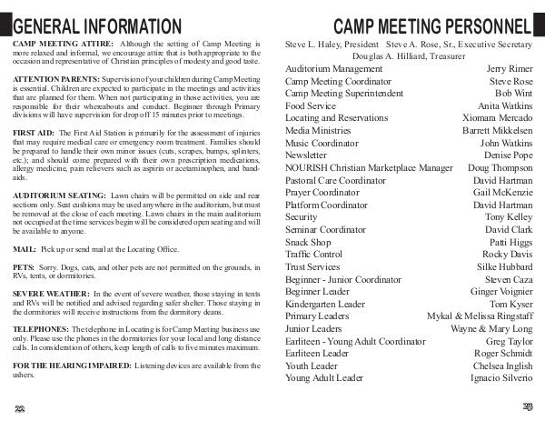 TELEPHONES: The telephone in Locating is for Camp Meeting business use