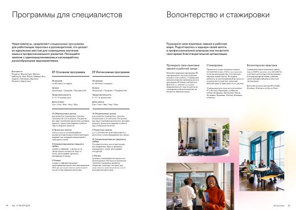 Изучайте языковые программы EF , одновременно получая глубокие знания и опыт работы . Стажировка или волонтерство включены во все программы EF Advanced Diploma . Для всех остальных программ Академического года за рубежом стажировка или волонтерство не являются обязательными .