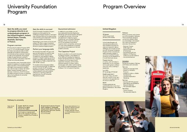 EF University Foundation Program ( UFP ), available in : Cambridge , Oxford , Dublin , Boston , New York , San Francisco , Vancouver , Sydney , Munich and Paris 6 , 9 or 11 months |