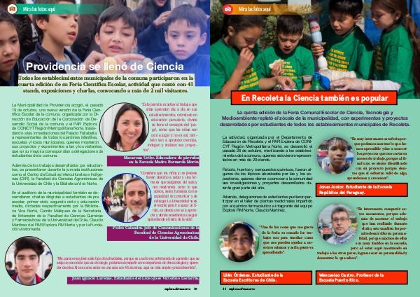 La Municipalidad de Providencia acogió, el pasado 19 de octubre, una nueva versión de la Feria Científica Escolar de la comuna, organizada por la Dirección de Educación de la Corporación de Desarrollo Social de la comuna y el PAR Explora de CONICYT Región Metropolitana Norte, trasladando a las inmediaciones del Palacio Fallabella a representantes de todos los jardines infantiles, escuelas y liceos municipales, quienes mostraron sus proyectos y experimentos a las y los visitantes, que en su mayoría correspondían a delegaciones de estudiantes de la comuna.