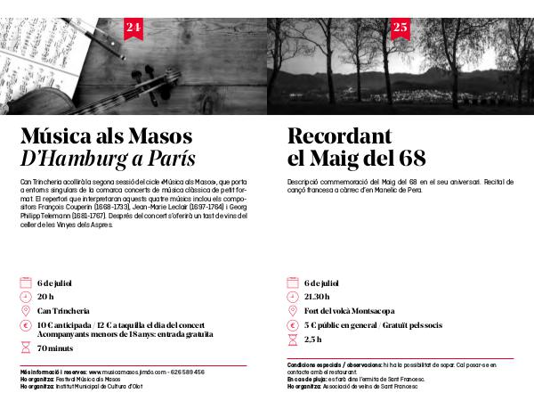 Condicions especials / observacions: hi ha la possibilitat de sopar. Cal posar-se en