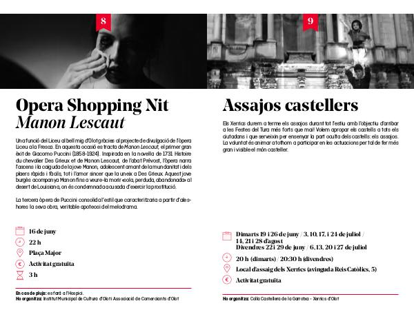Dimarts 19 i 26 de juny / 3, 10, 17, i 24 de juliol /