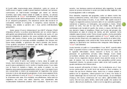 stringeva imbronciata al busto, il suo AK47. Alle spalle ossute e