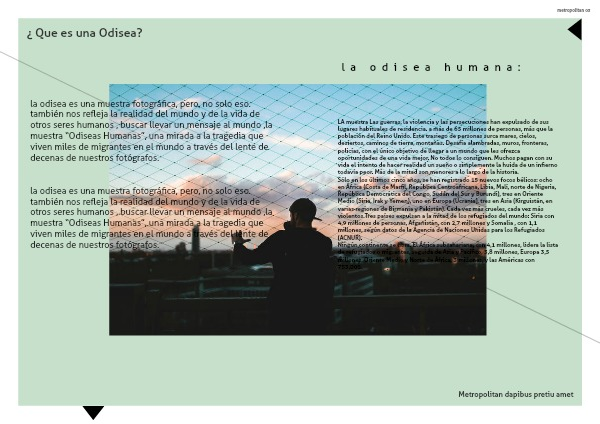 LA muestra Las guerras, la violencia y las persecuciones han expulsado de sus lugares habituales de residencia. a más de 65 millones de personas, más que la población del Reino Unido. Este trasiego de personas surca mares, cielos, desiertos, caminos de tierra, montañas. Desafía alambradas, muros, fronteras, policías, con el único objetivo de llegar a un mundo que les ofrezca oportunidades de una vida mejor. No todos lo consiguen. Muchos pagan con su vida el intento de hacer realidad un sueño o simplemente la huida de un infierno todavía peor. Más de la mitad son menores a lo largo de la historia.
