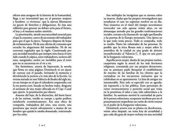 Aquella joven mujer , dueña de sus propios sueños , casquivana según la moral de los más fervientes religiosos , consumida por sus propios detractores , tras su asesinato pudo finiquitar el establishment de muchas de las familias de los clientes que la cortejaban en los encuentros rutinarios que se celebraban en su apartamento . La lista de amigos era innumerable . Pero solo se especuló con su agenda , sin exponerla a la luz pública . Eran personajes de cierto reconocimiento y posición social que veían en la prostituta el salto a una vida subterránea a la familiar . Su asesinato motivó la curiosidad de parte de la prensa valenciana , escaparate morboso por ser el presuntamente sospechoso un varón de cierto estatus en el podio de la burguesía valenciana .
