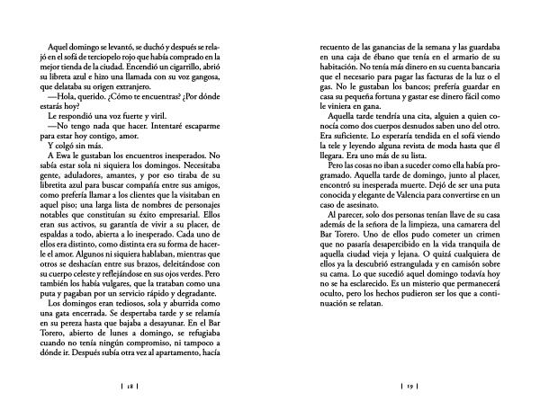 Pero las cosas no iban a suceder como ella había programado . Aquella tarde de domingo , junto al placer , encontró su inesperada muerte . Dejó de ser una puta conocida y elegante de Valencia para convertirse en un caso de asesinato .