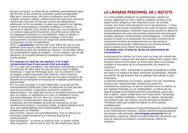 LE LANGAGE PERSONNEL DE L'ARTISTE