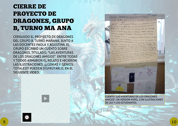 CUENTO "LAS AVENTURAS DE LOS DRAGONES AMIGOS", EN VERSIÓN PAPEL, CON ILUSTRACIONES DE LAS Y LOS ESTUDIANTES.
