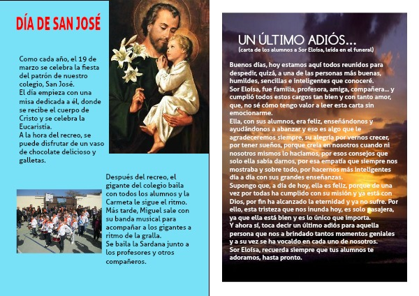 Sor Eloísa, fue familia, profesora, amiga, compañera... y cumplió todos estos cargos tan bien y con tanto amor, que, no sé cómo tengo valor a leer esta carta sin emocionarme.