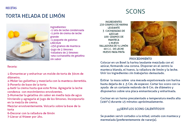 Estirar la masa sobre una mesada espolvoreada con harina hasta dejarla de 2 ,5 Cm. de espesor. Cortar los scons con la ayuda de un cortante redondo de 6 Cm. de diámetro y disponerlos sobre una placa enmantecada y enharinada.