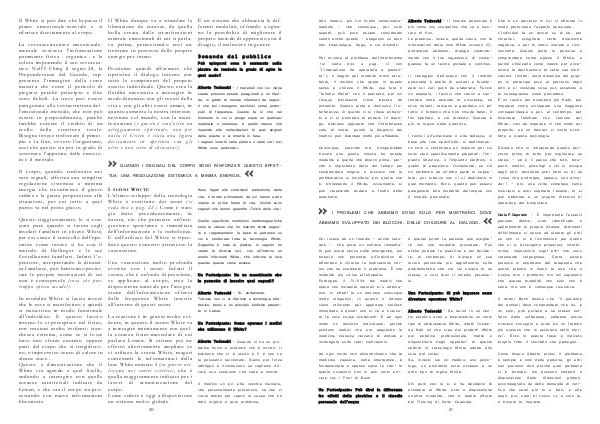 I SUONI W HITE L ' ultimo sviluppo della tecnologia White è costituito dai suoni( si veda box a pag. 22). Come è stato già detto precedentemente, in natura, ciò che permette un ' integrazione spontanea e immediata dell ' informazione è la turbolenza. E nell ' utilizzo del White si riproduce questo concetto attraverso la succussione.