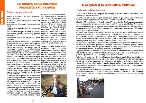 Día tras día Miguel aprovecha su conocimiento y los avances en tecnología para enseñar a las personas que van de visita a este lugar para contarles que aún se conservan tradiciones muy arraigadas a Usaquén que los jóvenes pueden disfrutar.