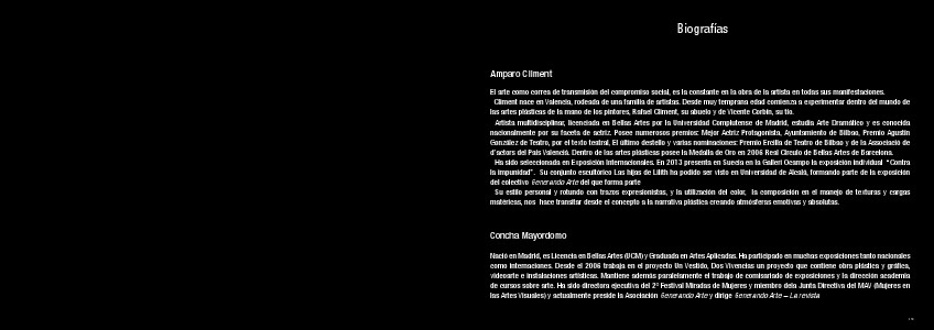 la impunidad”. Su conjunto escultórico Las hijas de Lilith ha podido ser visto en Universidad de Alcalá, formando parte de la exposición