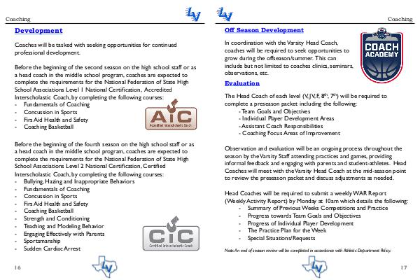 a head coach in the middle school program, coaches are expected to