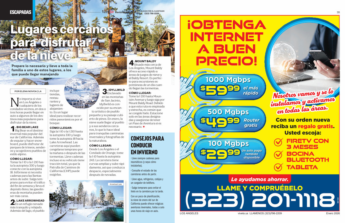 No importa si vive en Los Ángeles o cualquiera de los condados vecinos, en dos o tres horas puede llegar en auto a algunos de los destinos más populares para disfrutar de la nieve.
