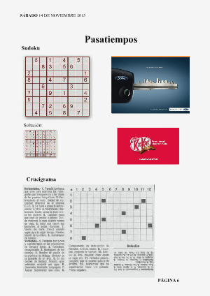 SÁBADO 14 DE NOVIEMBRE 2015 Pasatiempos Sudoku Solución: Crucigrama PÁGINA 6