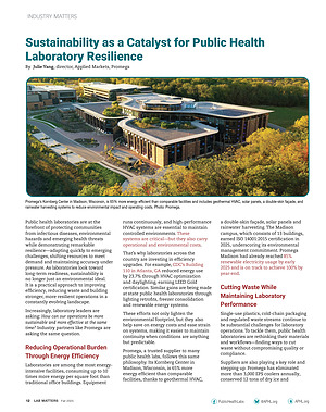 Public health laboratories are at the forefront of protecting communities from infectious diseases, environmental hazards and emerging health threats while demonstrating remarkable resilience— adapting quickly to emerging challenges, shifting resources to meet demand and maintaining accuracy under pressure. As laboratories look toward long-term readiness, sustainability is no longer just an environmental ideal. It is a practical approach to improving efficiency, reducing waste and building stronger, more resilient operations in a constantly evolving landscape.